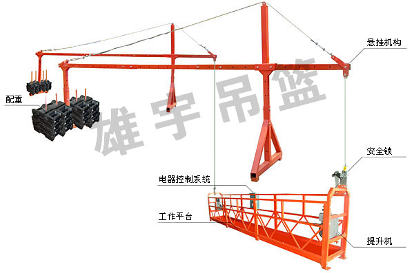 “雄宇牌”ZLP系列電動(dòng)吊籃是一種能夠代替?zhèn)鹘y(tǒng)腳手架,可減輕勞動(dòng)強(qiáng)度,提高工作效率,并能重復(fù)使用的新型高處作業(yè)設(shè)備,已在高層建筑的外墻涂飾、幕墻安裝、維護(hù)清洗等高處作業(yè)中得到廣泛應(yīng)用。施工費(fèi)用僅為傳統(tǒng)腳手架的30%。 |